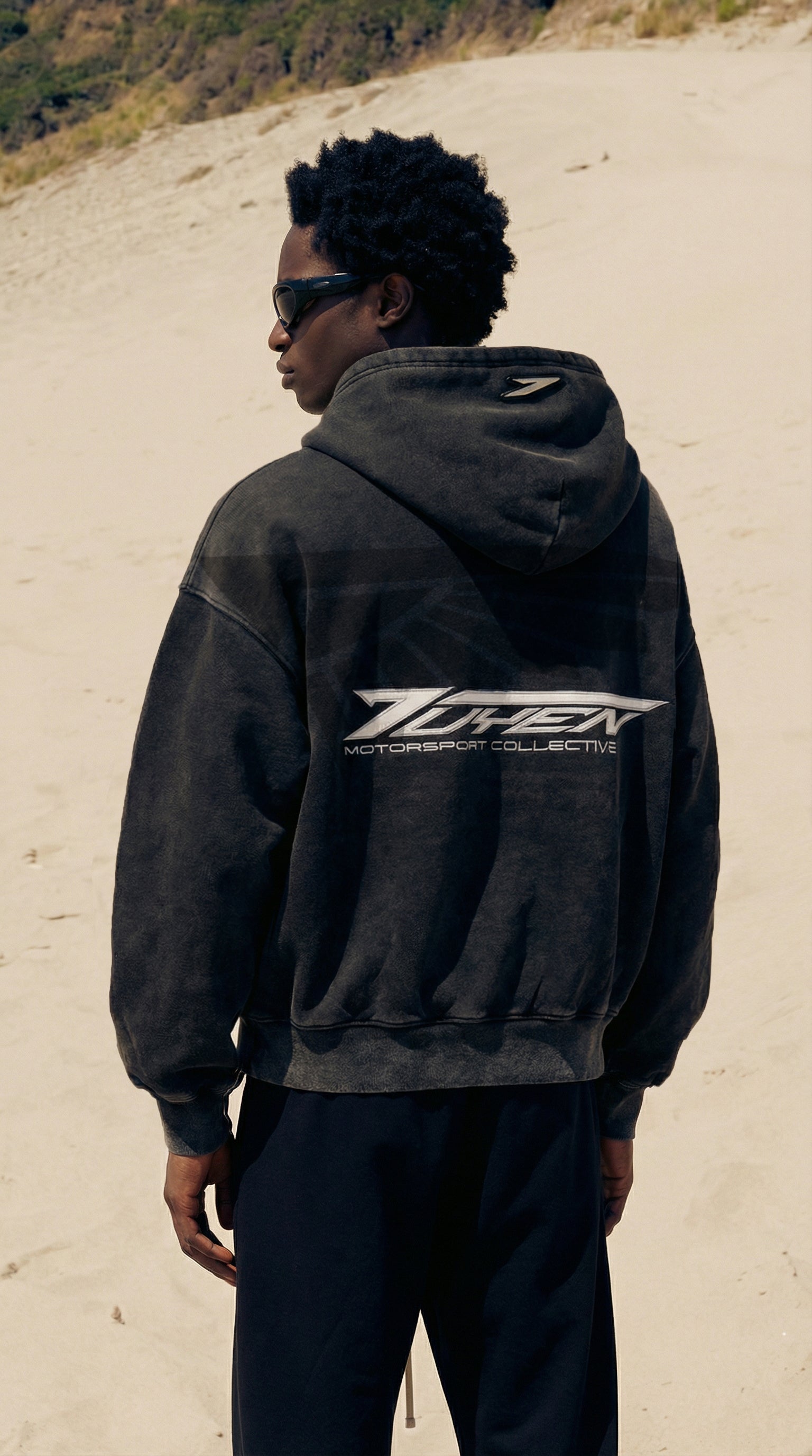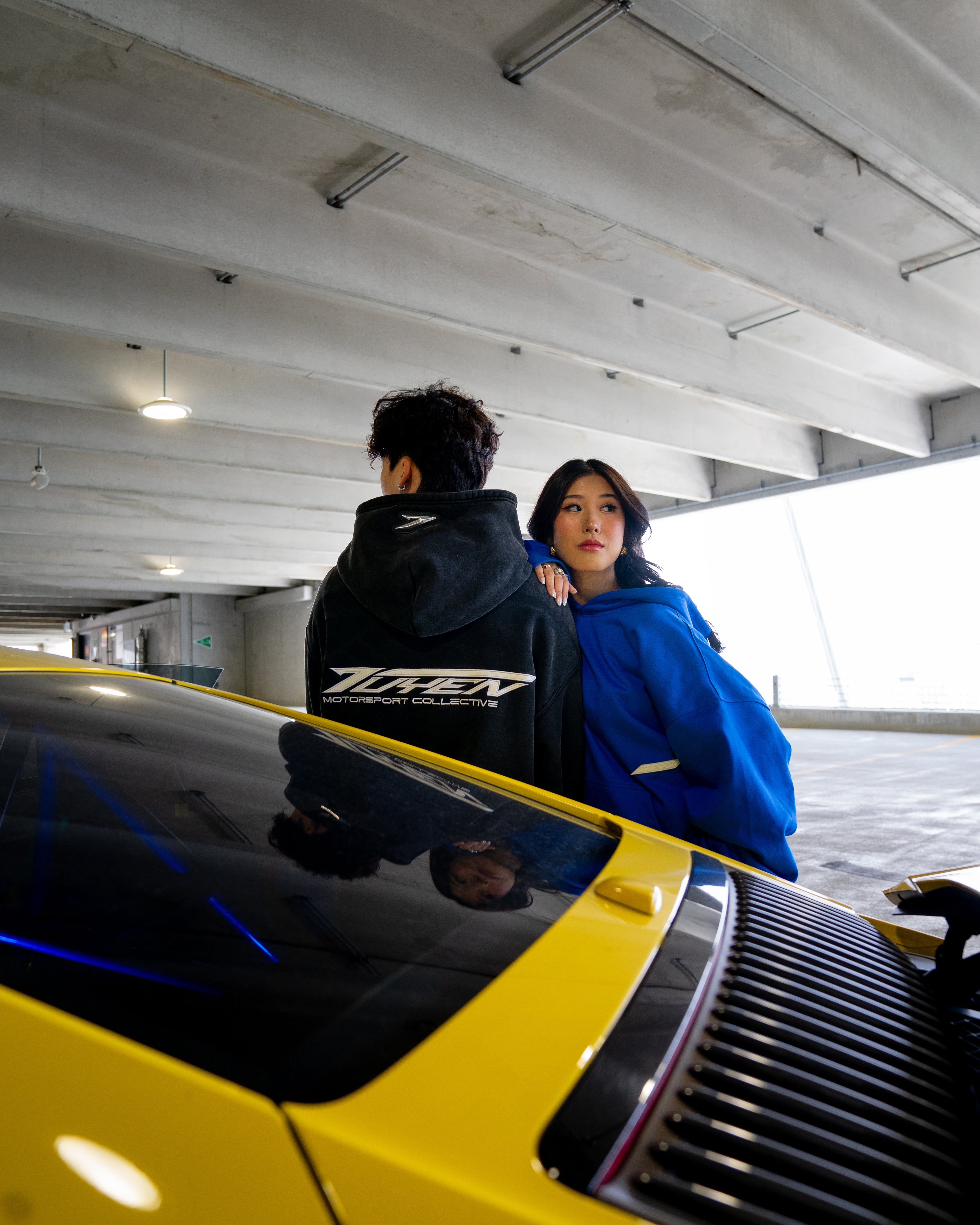 Introducing the Cobalt Racer Hoodie: relaxed, motorsport-inspired, blending classic and modern. Washed cotton-blend fleece, tonal stitching, ribbed cuffs, and a kangaroo pocket ensure comfort. A timeless everyday staple.