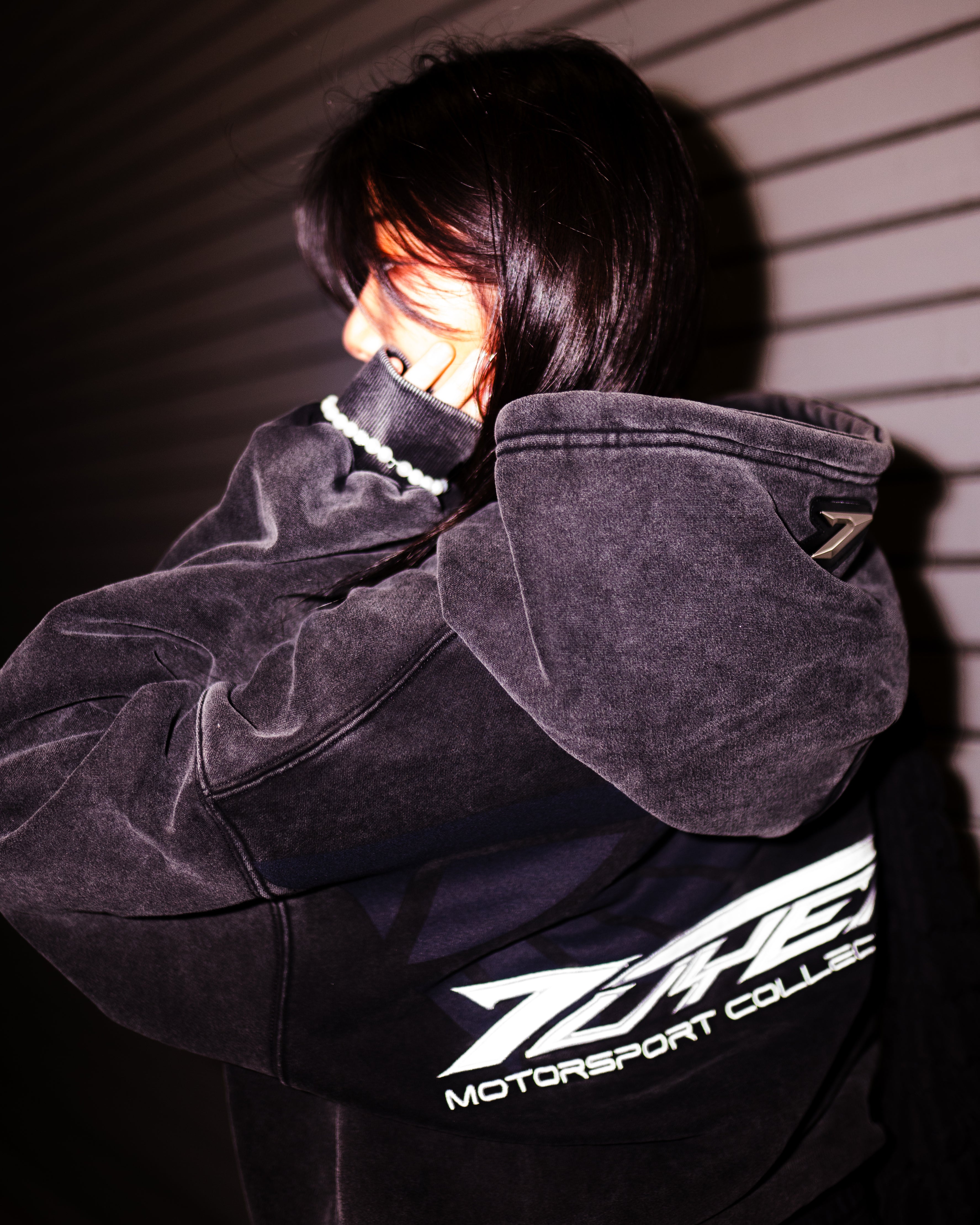 Introducing the Vintage Racer Tee: relaxed, motorsport-inspired, blending classic and modern. This piece features a washed black finish, premium heavyweight cotton, and a structured cropped fit.